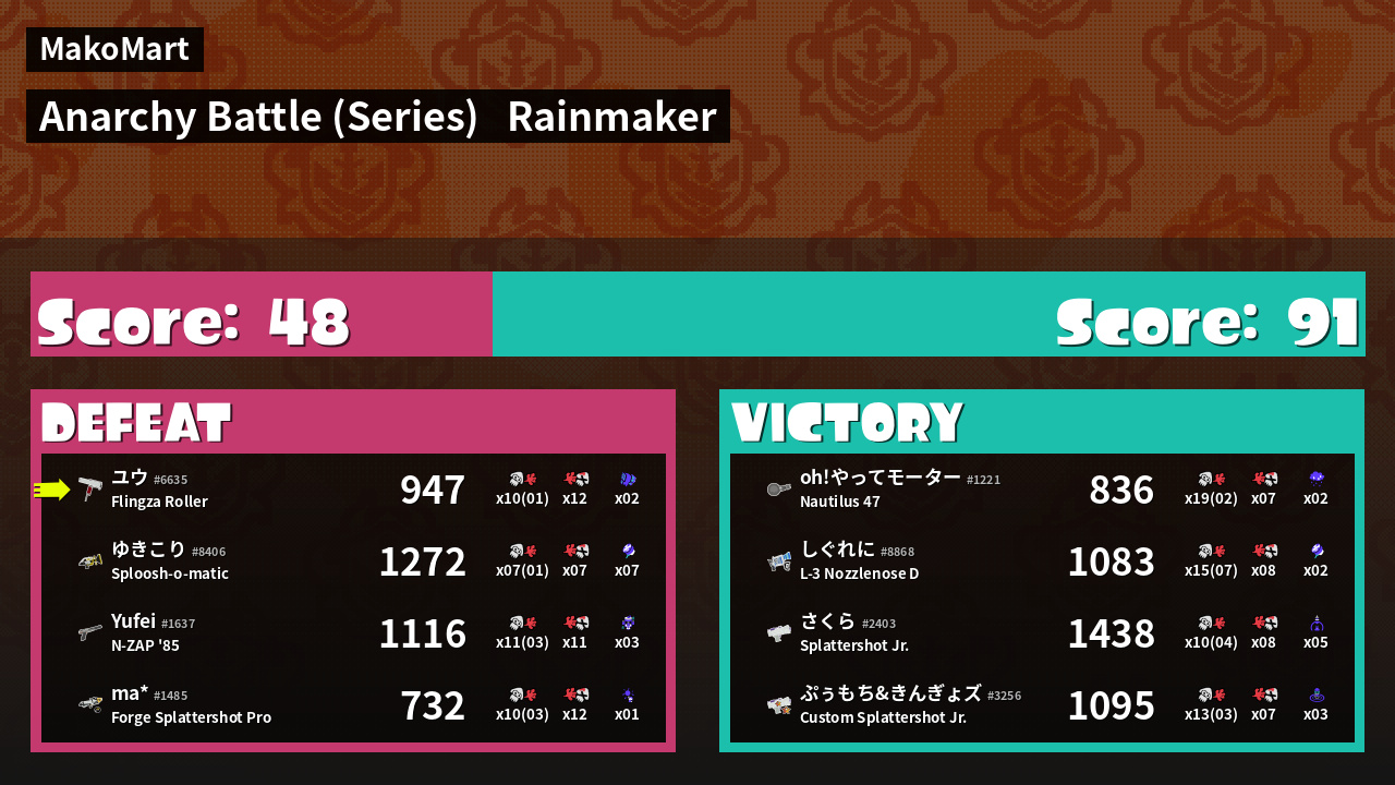 | Mode | Rainmaker - Anarchy Battle (Series) | ||