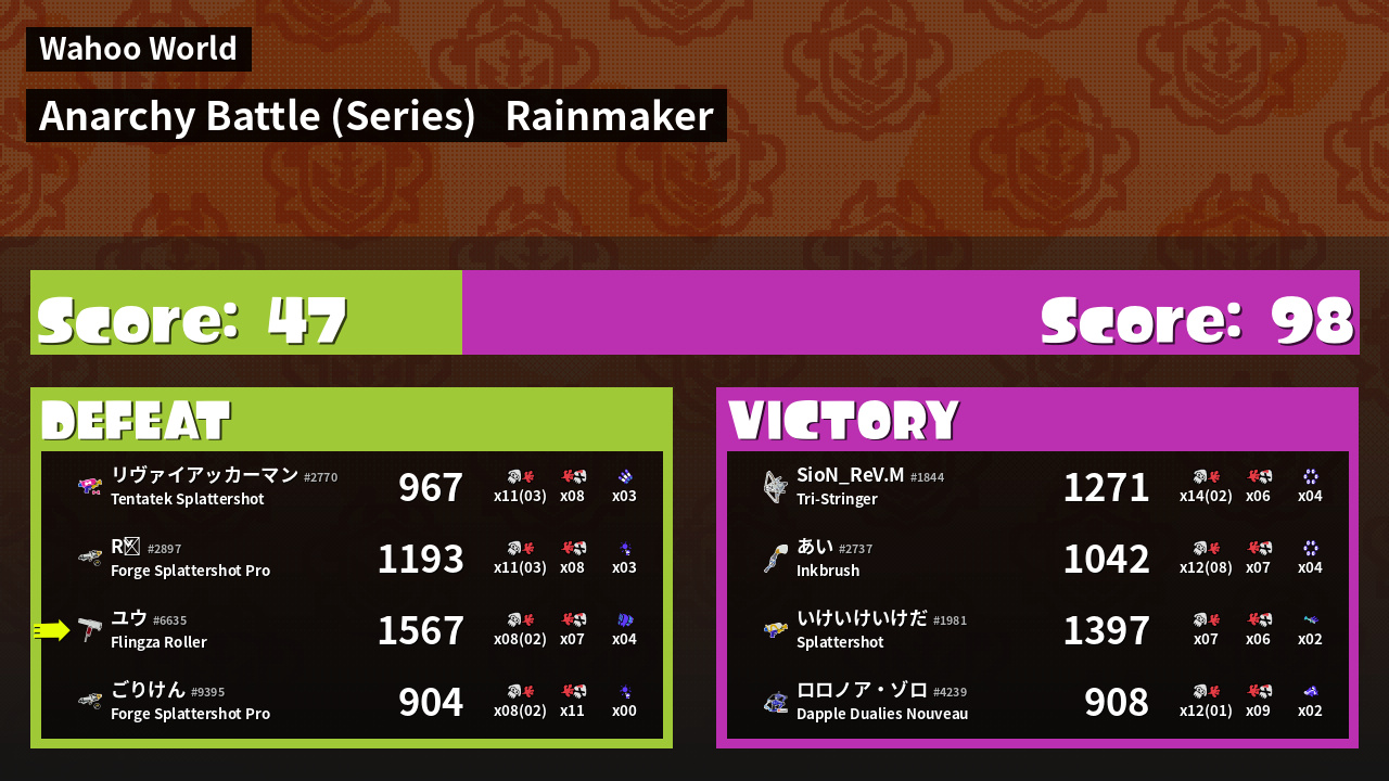 | Mode |    Rainmaker -   Anarchy Battle (Series) | ||