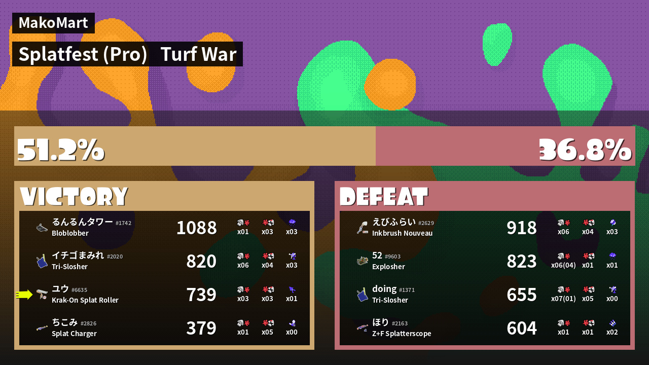 | Medals | #1 Home-Base Inker #1 Kraken Royale User #2 Overall Splatter | ||