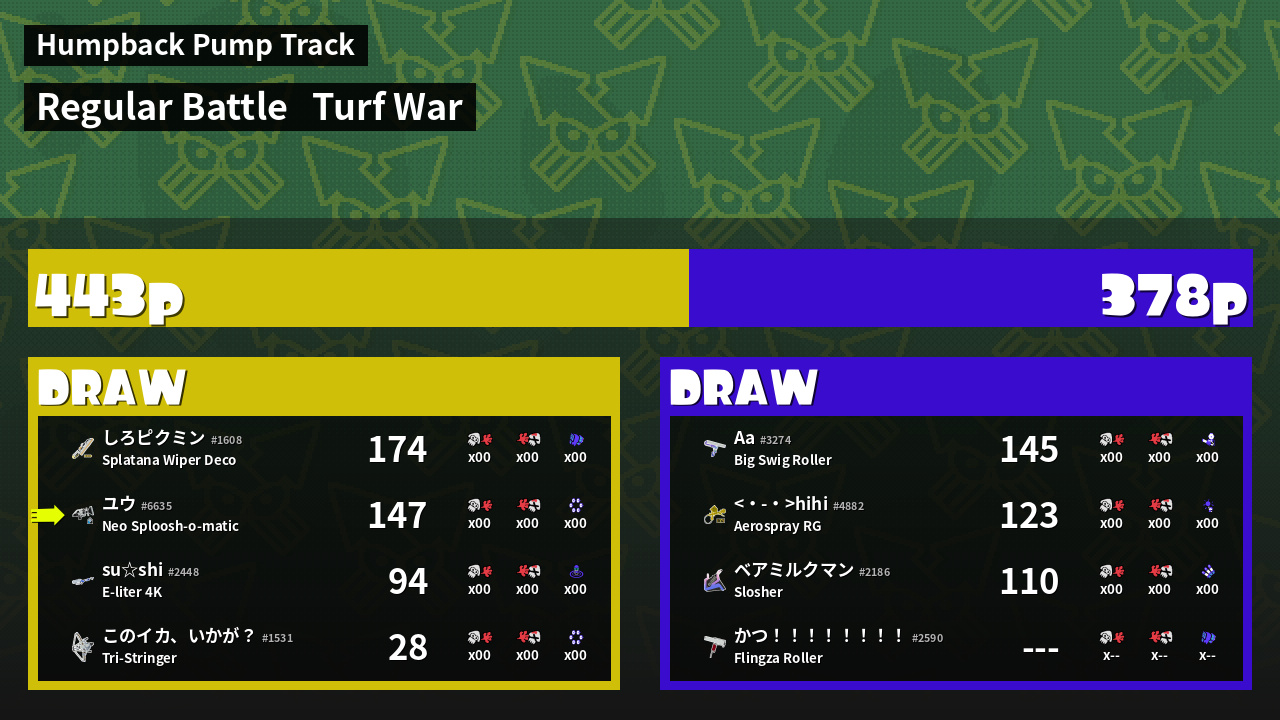 | Name | Weapon | Inked |  k |  d | KR | Sp | |