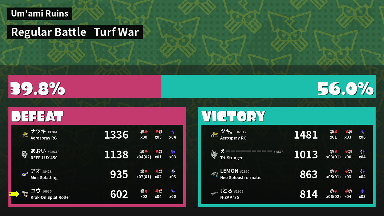 | Mode | Turf War - Regular Battle | ||