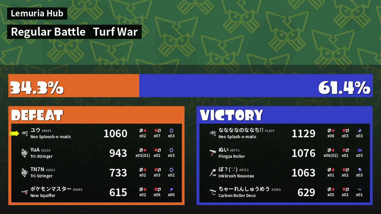 | Mode | Turf War - Regular Battle | ||