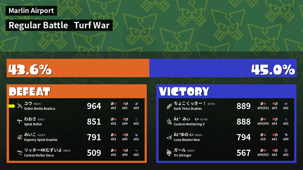 | Mode | Turf War - Regular Battle | ||