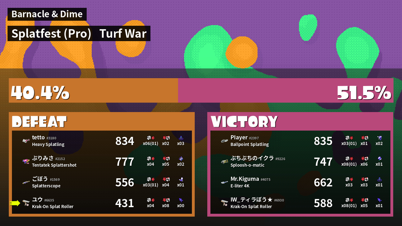 | Mode | Turf War - Splatfest (Pro) | ||