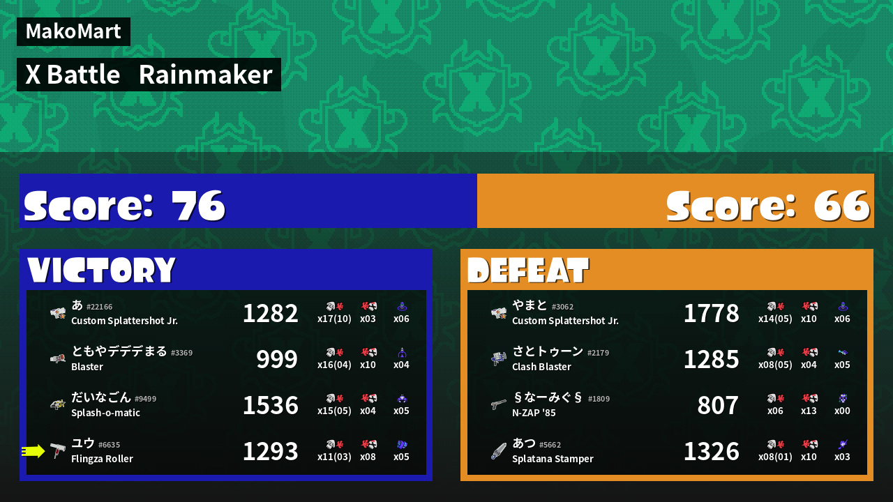 | Weapon | Flingza Roller ( Ink Mine / Tenta Missiles) | ||