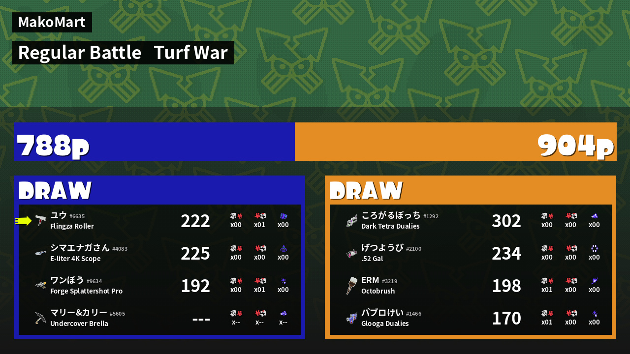 | Weapon | Flingza Roller ( Ink Mine / Tenta Missiles) | ||