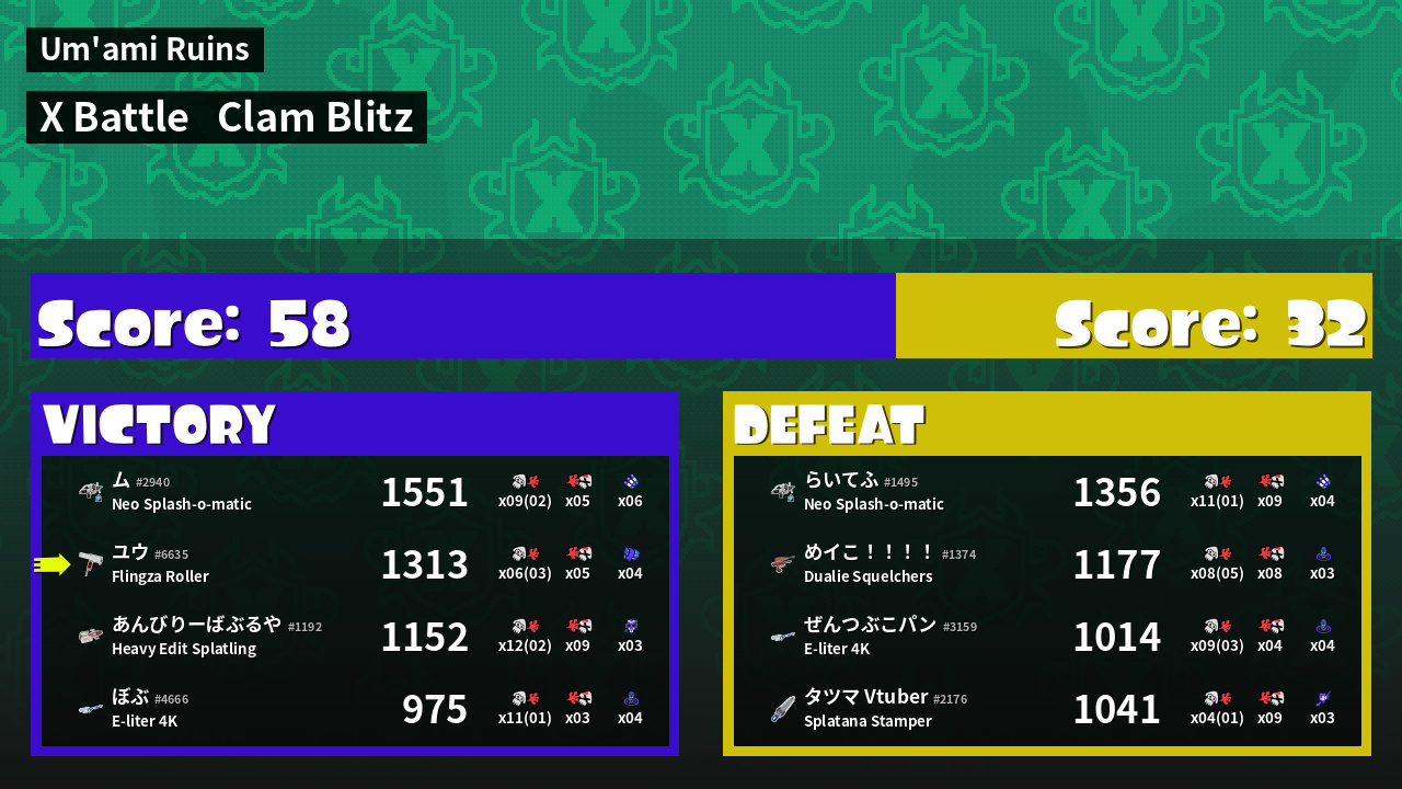 | Medals | #1 Clam Carrier #1 Super Jump Spot #1 Splat Assister | ||