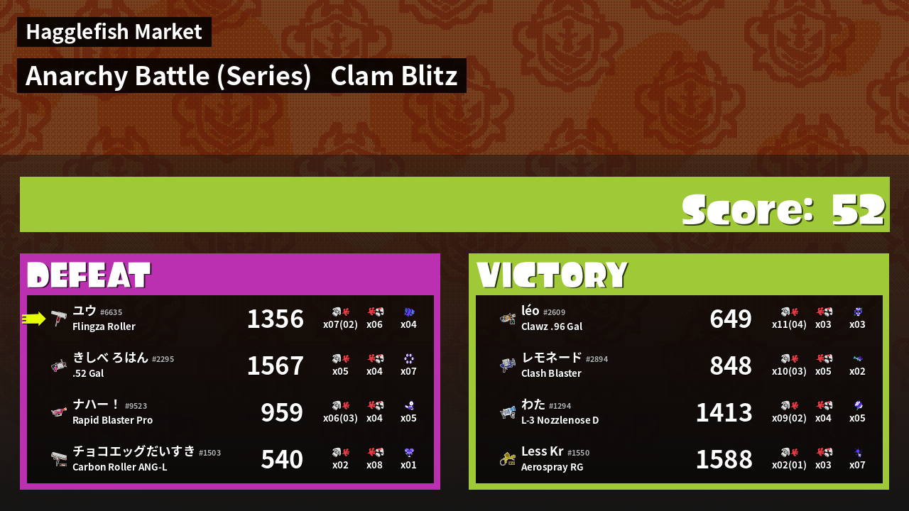 | Mode | Clam Blitz - Anarchy Battle (Series) | ||