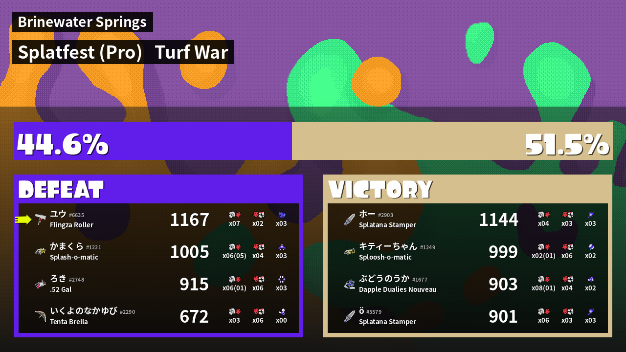 | Mode | Turf War - Splatfest (Pro) | ||