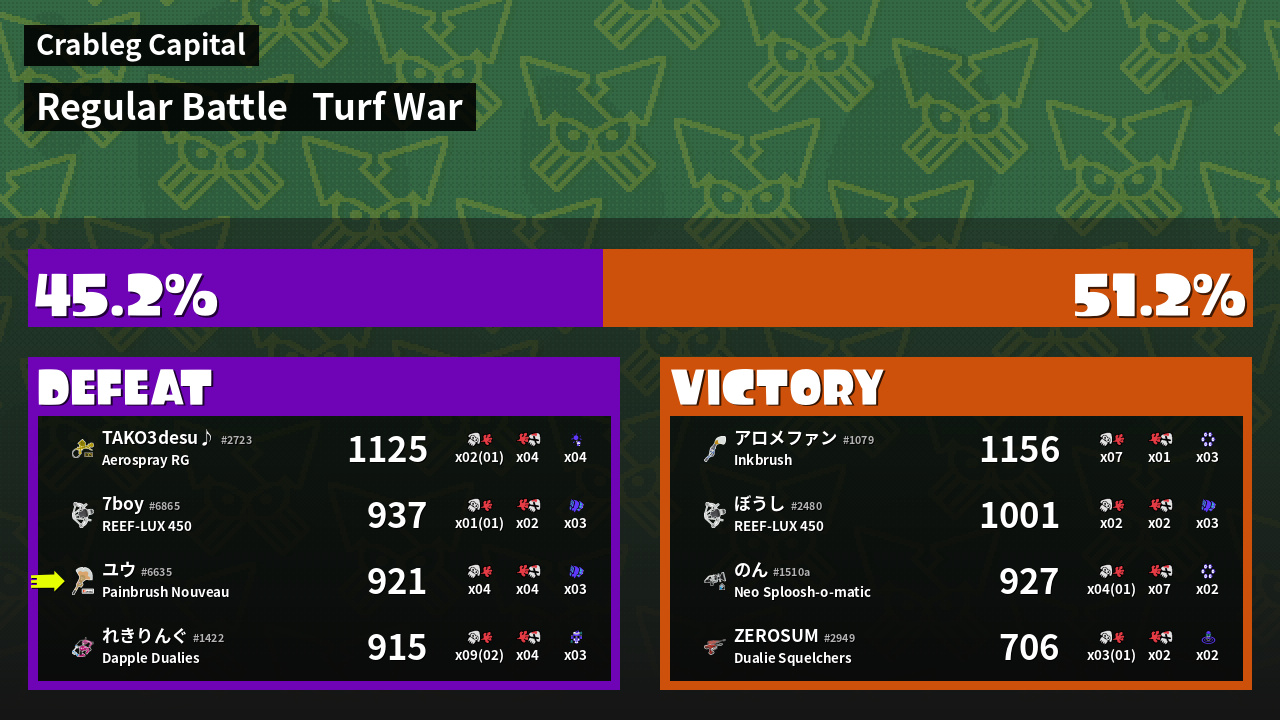 | Mode | Turf War - Regular Battle | ||