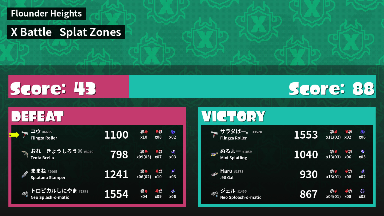 | Name | Weapon | X | Inked |  k |  d | KR | Sp | |