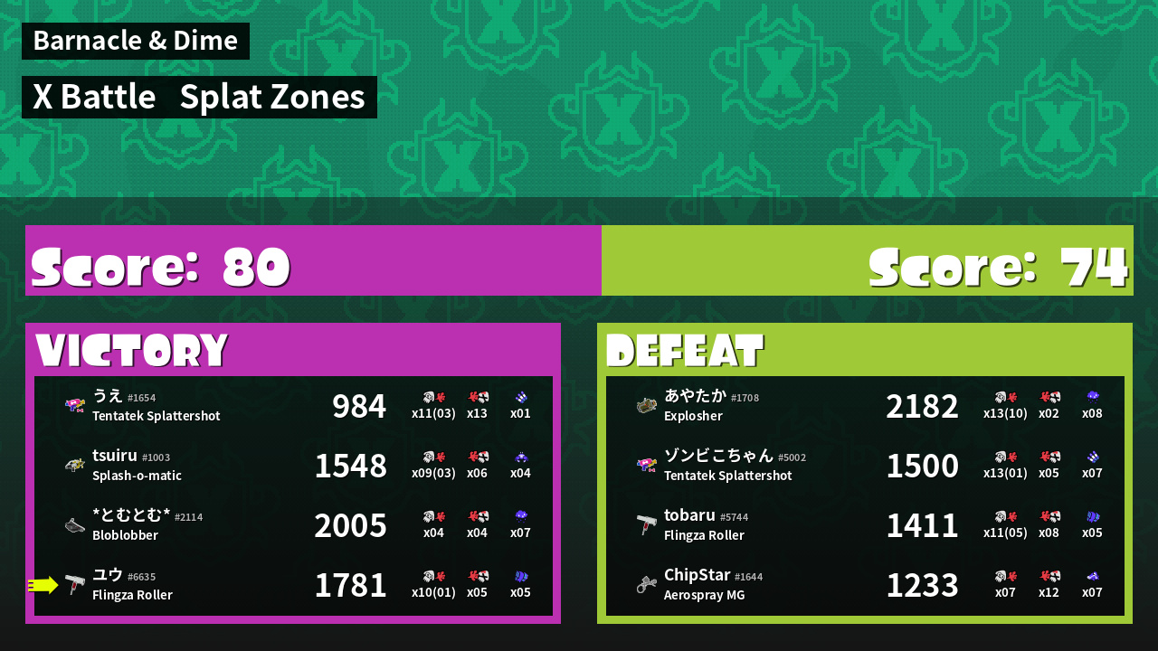 | Medals | #1 Enemy Splatter First Splat! #1 Tenta Missiles User | ||