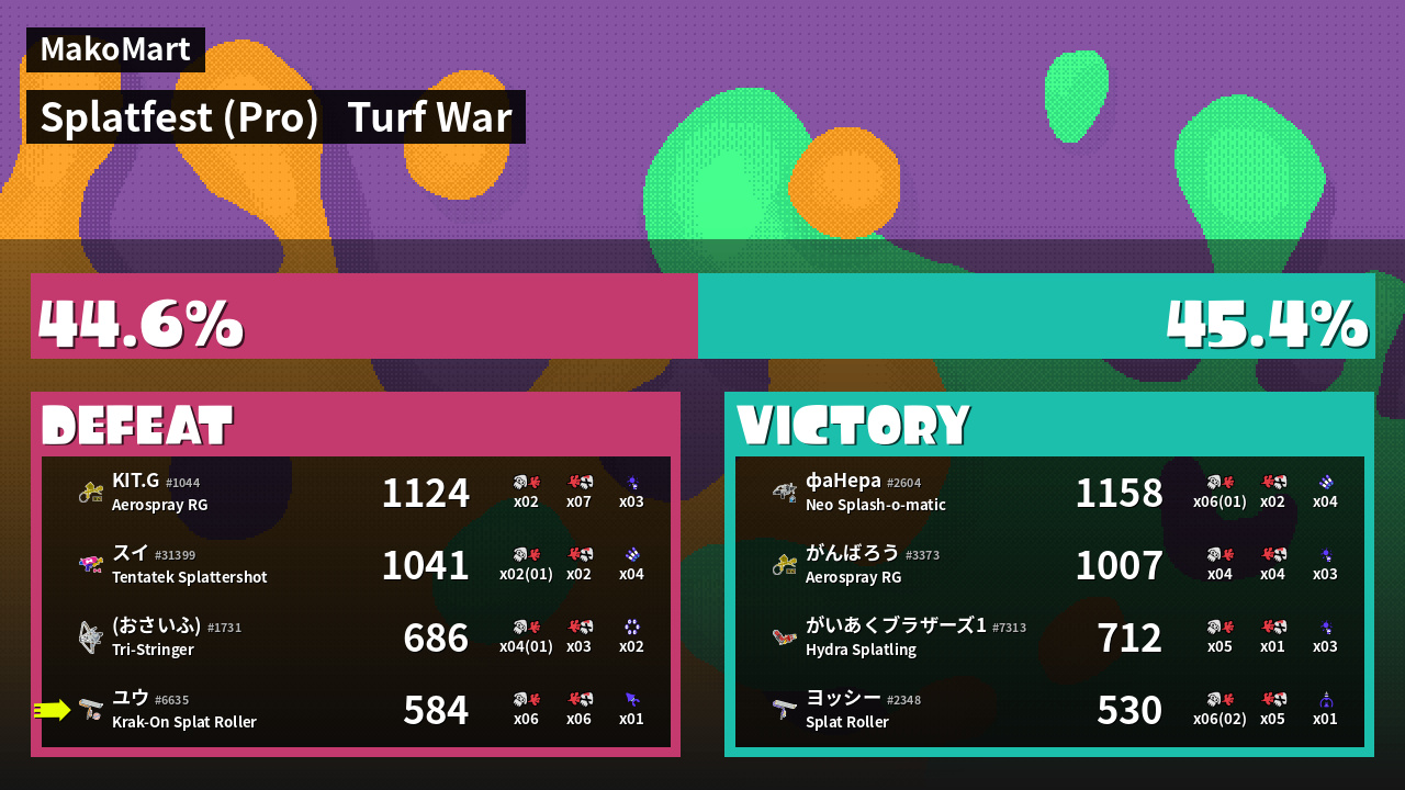 | Mode | Turf War - Splatfest (Pro) | ||