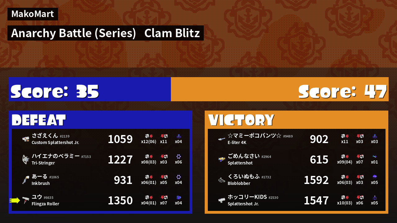 | Mode | Clam Blitz - Anarchy Battle (Series) | ||
