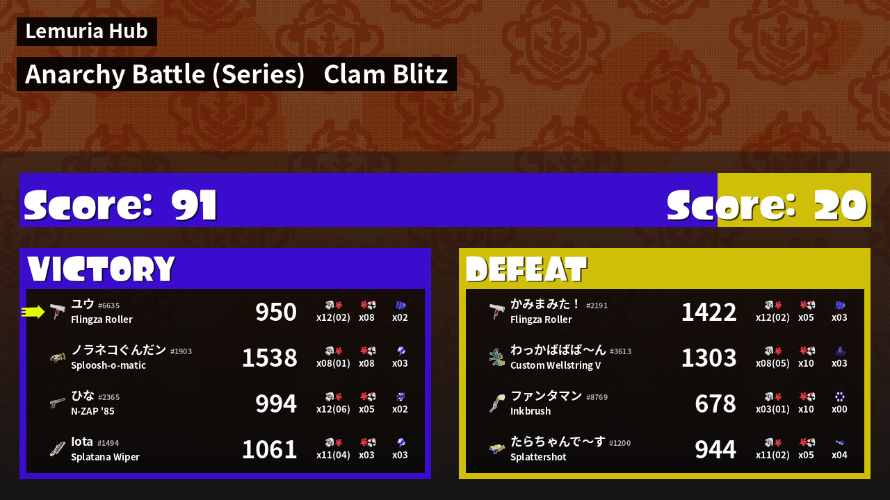 | Mode | Clam Blitz - Anarchy Battle (Series) | ||