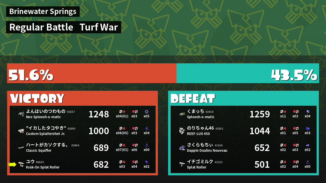 | Mode | Turf War - Regular Battle | ||
