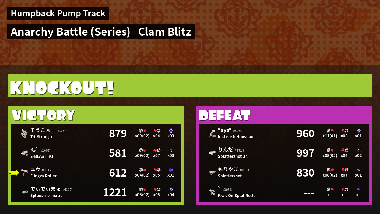 | Medals | #1 Score Booster #1 Clam Carrier #1 Splat Assister | ||