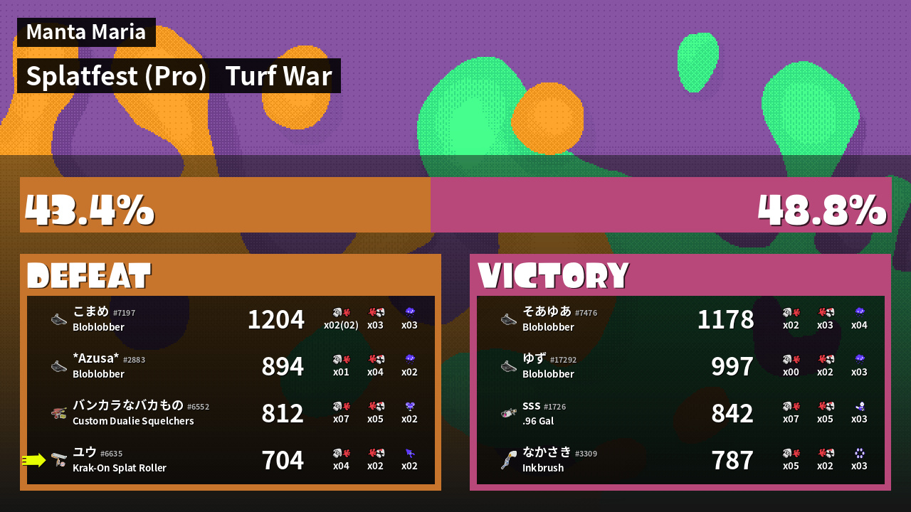 | Mode | Turf War - Splatfest (Pro) | ||