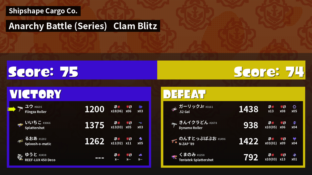 | Mode | Clam Blitz - Anarchy Battle (Series) | ||