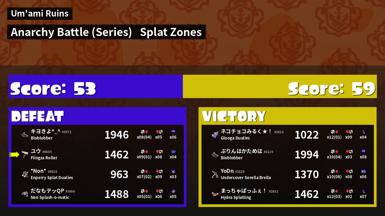 | Mode | Splat Zones - Anarchy Battle (Series) | ||