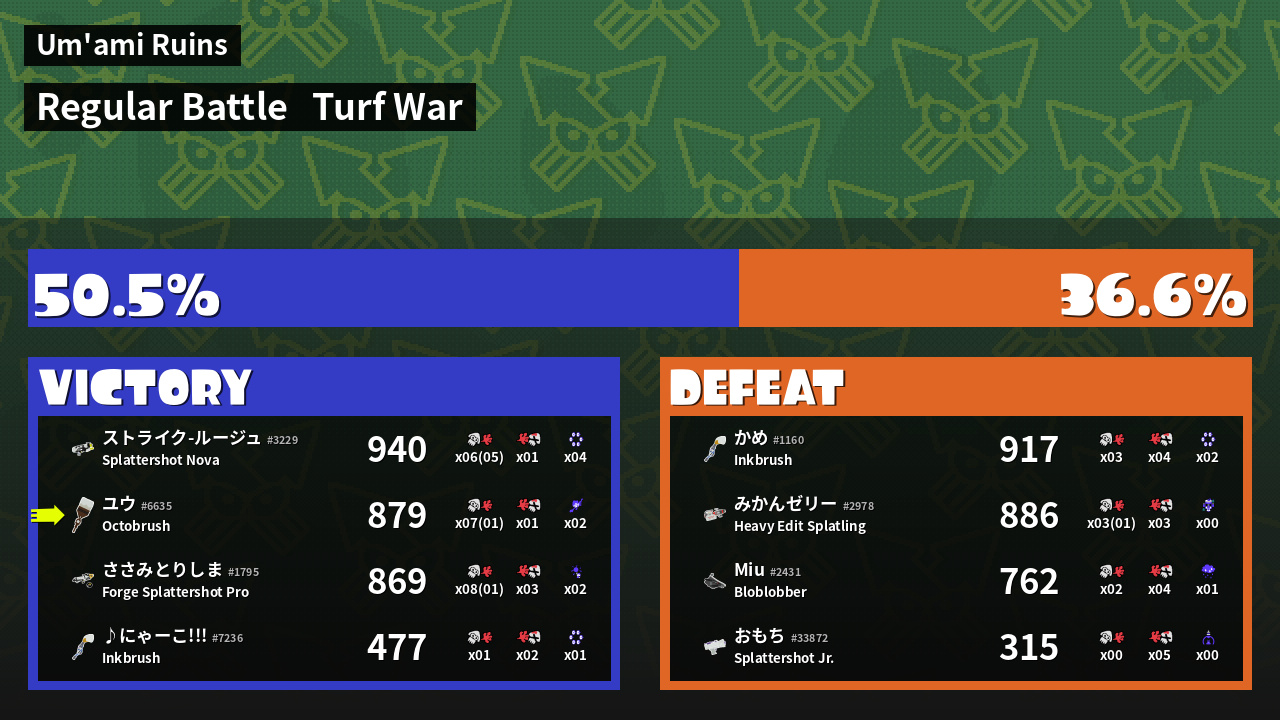 | Mode | Turf War - Regular Battle | ||