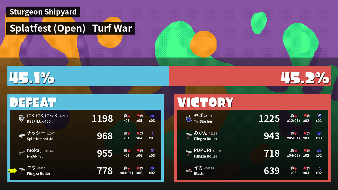 | Medals | #1 Enemy-Base Inker #1 Splat Assister #1 Damage Taker | ||