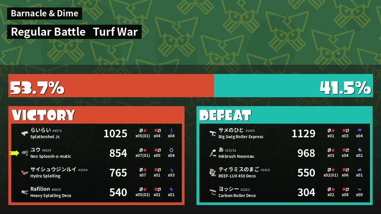 | Mode | Turf War - Regular Battle | ||