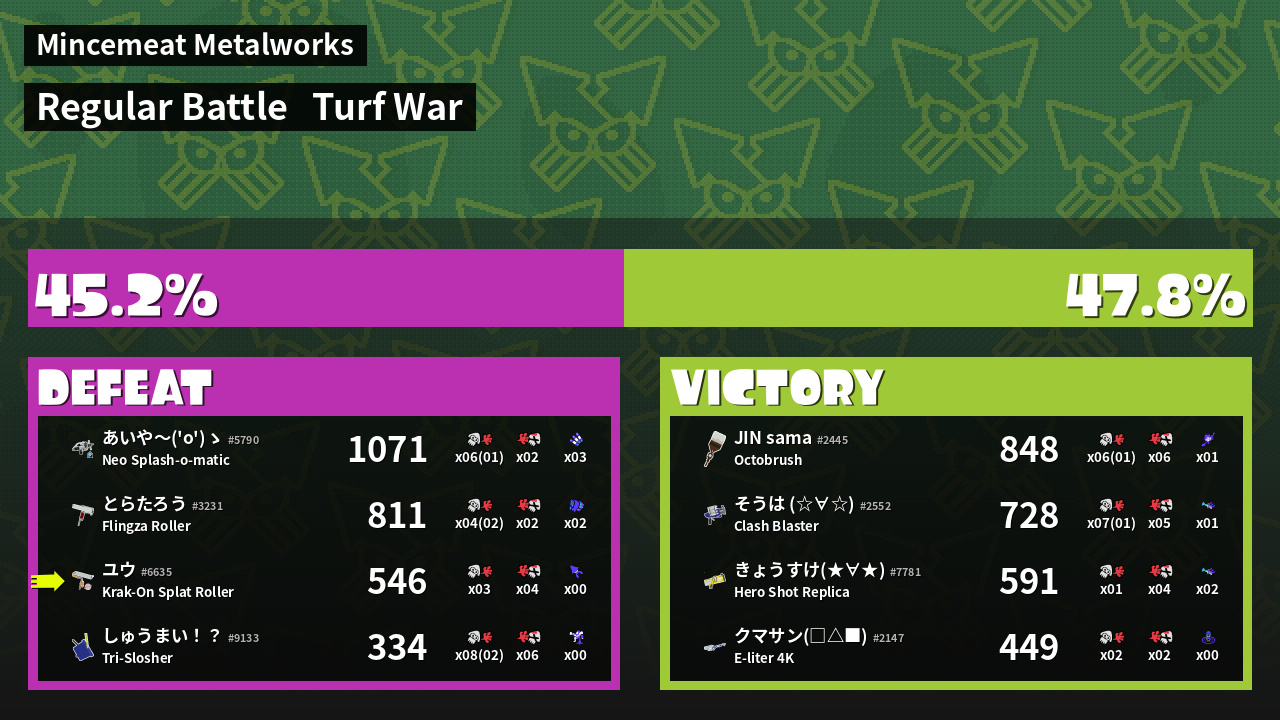 | Mode | Turf War - Regular Battle | ||