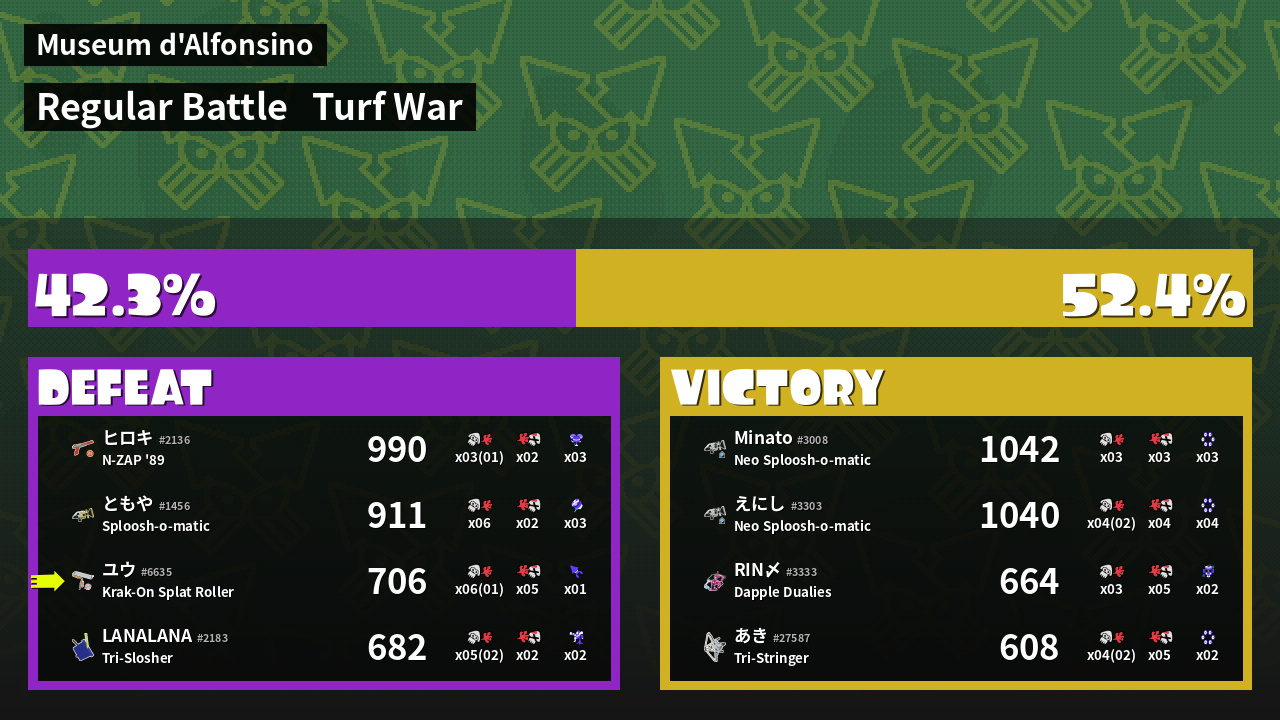 | Mode | Turf War - Regular Battle | ||