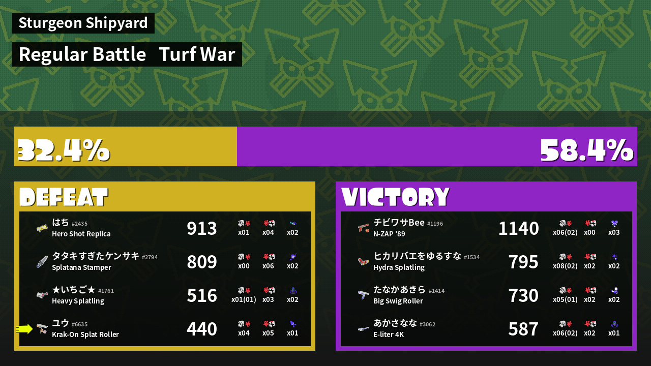 | Mode | Turf War - Regular Battle | ||