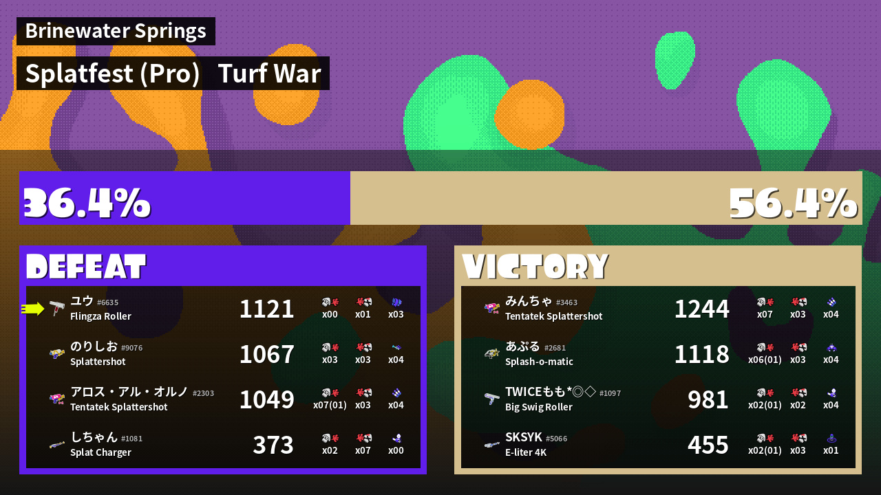 | Weapon | Flingza Roller ( Ink Mine / Tenta Missiles) | ||
