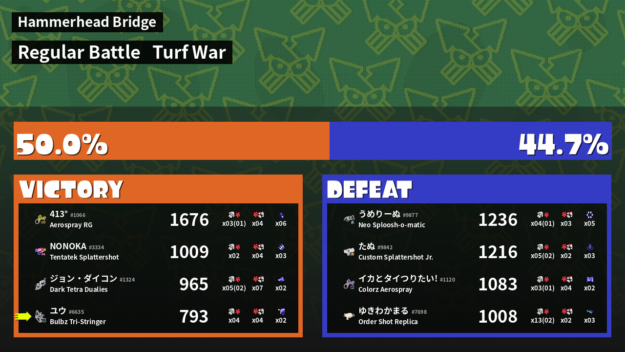 | Mode | Turf War - Regular Battle | ||