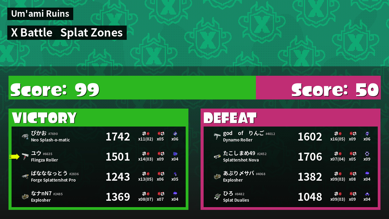 | Mode | Splat Zones - X Battle | ||