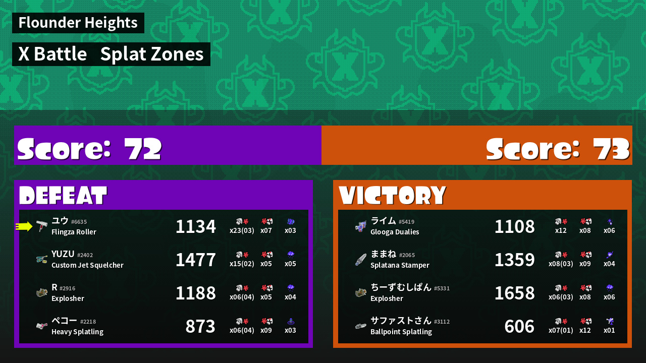 | Medals |  #1 Overall Splatter  #1 Splat Zone Guard  #1 Enemy Splatter | ||