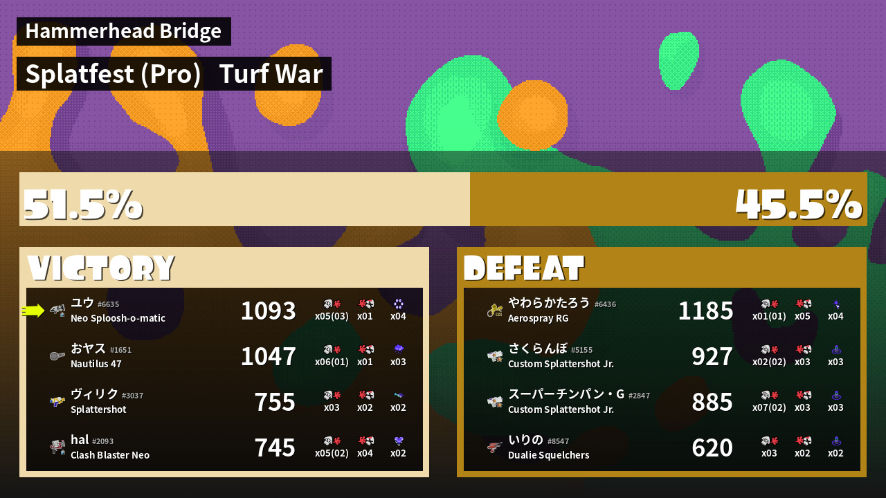 | Mode | Turf War - Splatfest (Pro) | ||