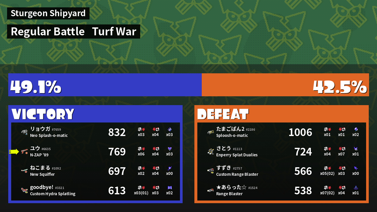 | Mode | Turf War - Regular Battle | ||