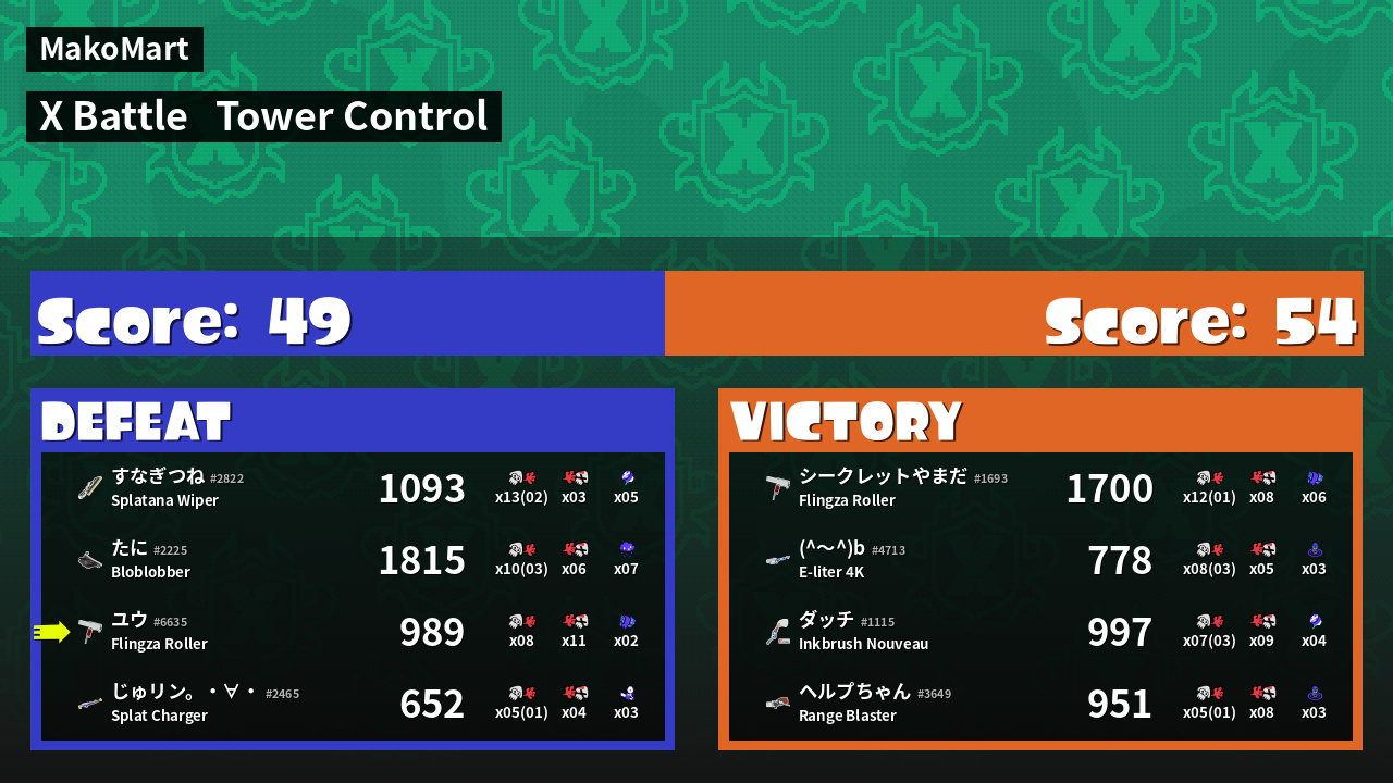 | Mode | Tower Control - X Battle | ||