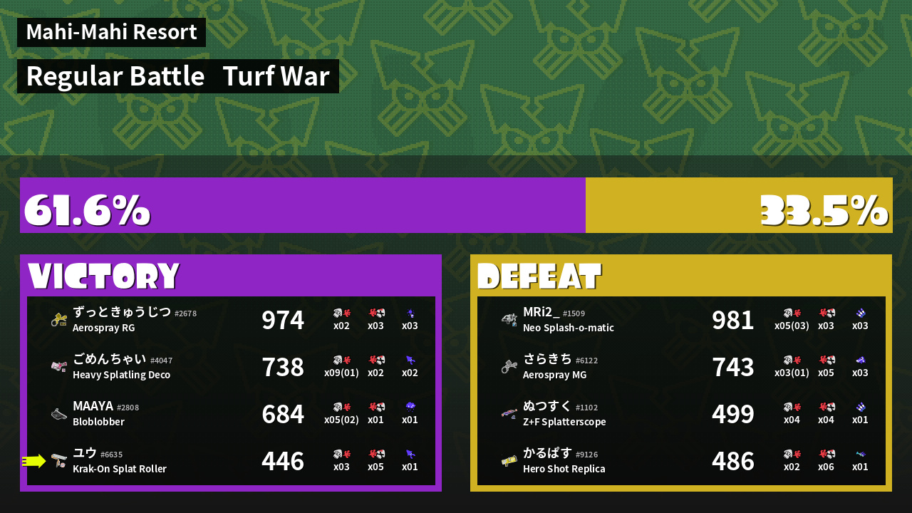 | Splatlandian Youth さらきち #6122 |  Aerospray MG                    | 743 | 2 + 1 | 5 | 0.40 |  3 | |