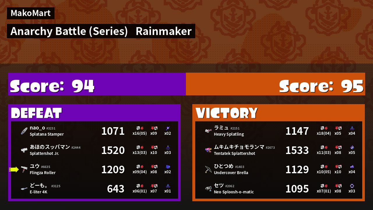| Mode | Rainmaker - Anarchy Battle (Series) | ||