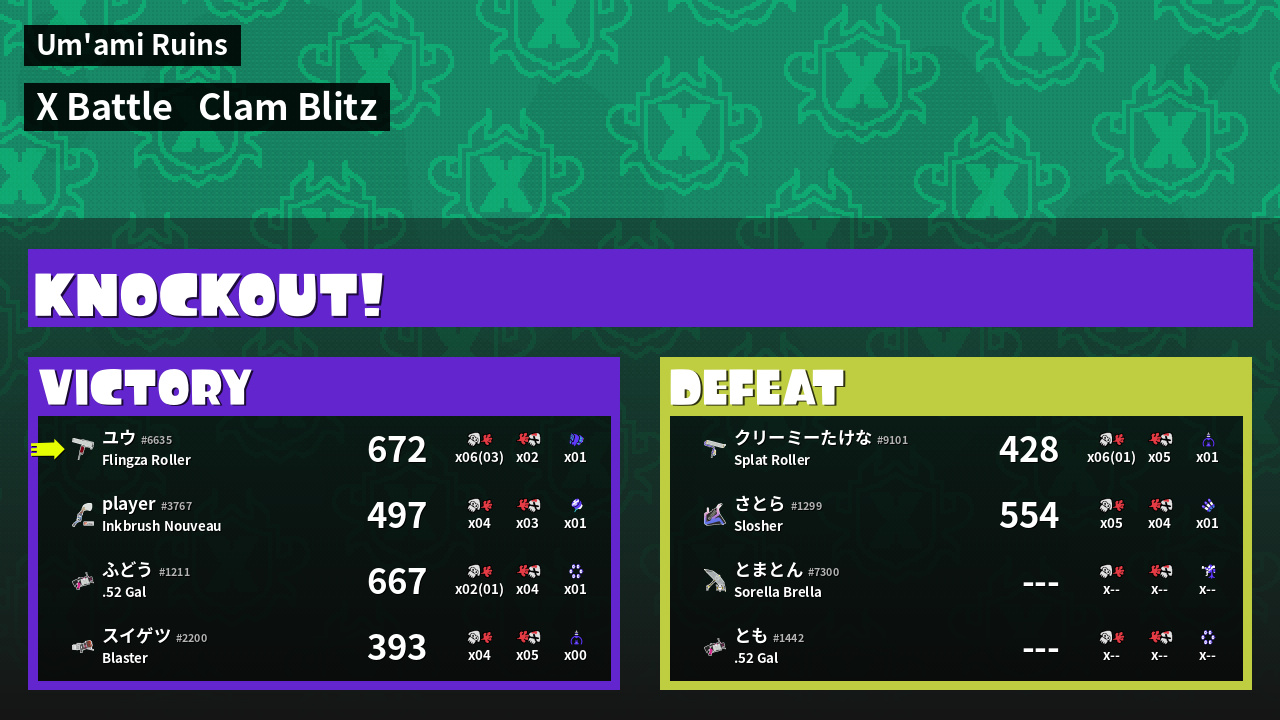 | Mode | Clam Blitz - X Battle | ||