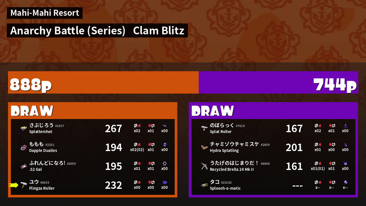 | Splatlandian Youth  さぶじろう #1037 |  Splattershot                    | 267 | 2 + 0 | 1 | 2.00 |  0 | |