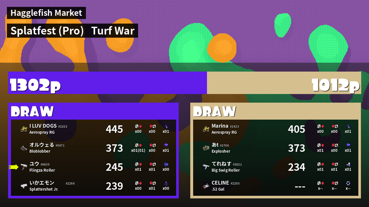 | Mode | Turf War - Splatfest (Pro) | ||