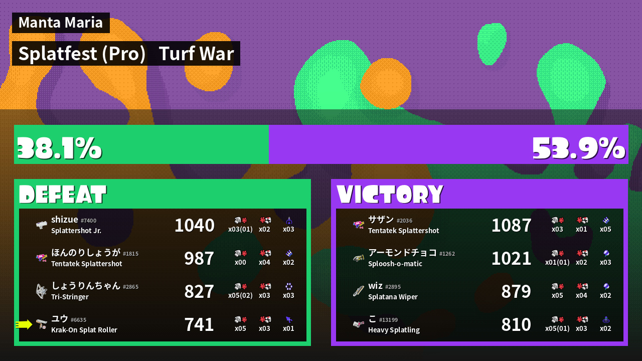 | Mode | Turf War - Splatfest (Pro) | ||