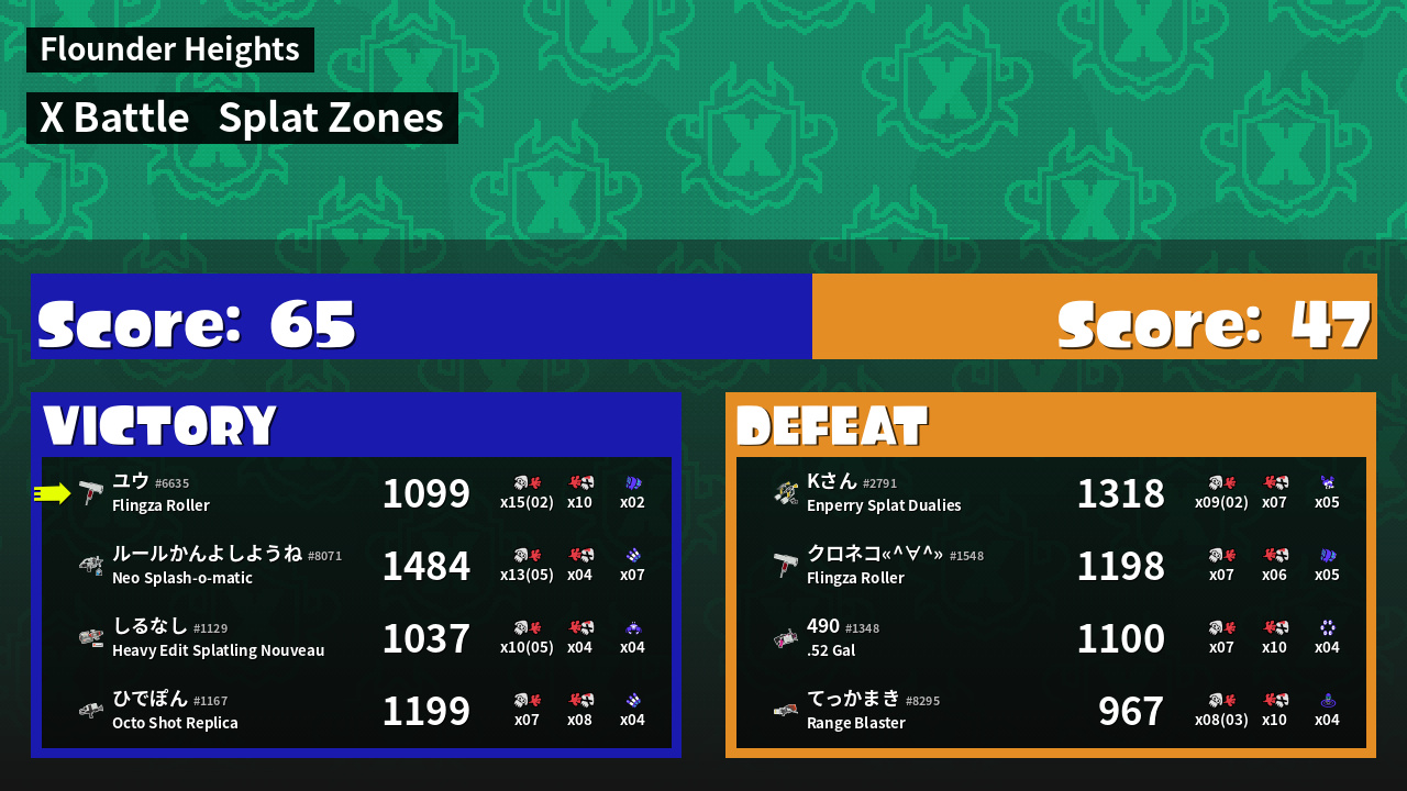 | Mode | Splat Zones - X Battle | ||