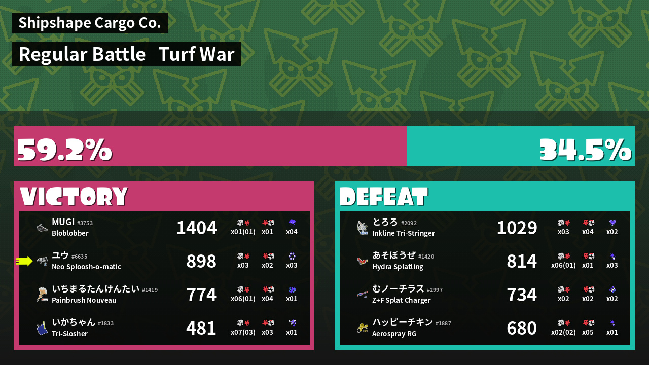 | Mode | Turf War - Regular Battle | ||