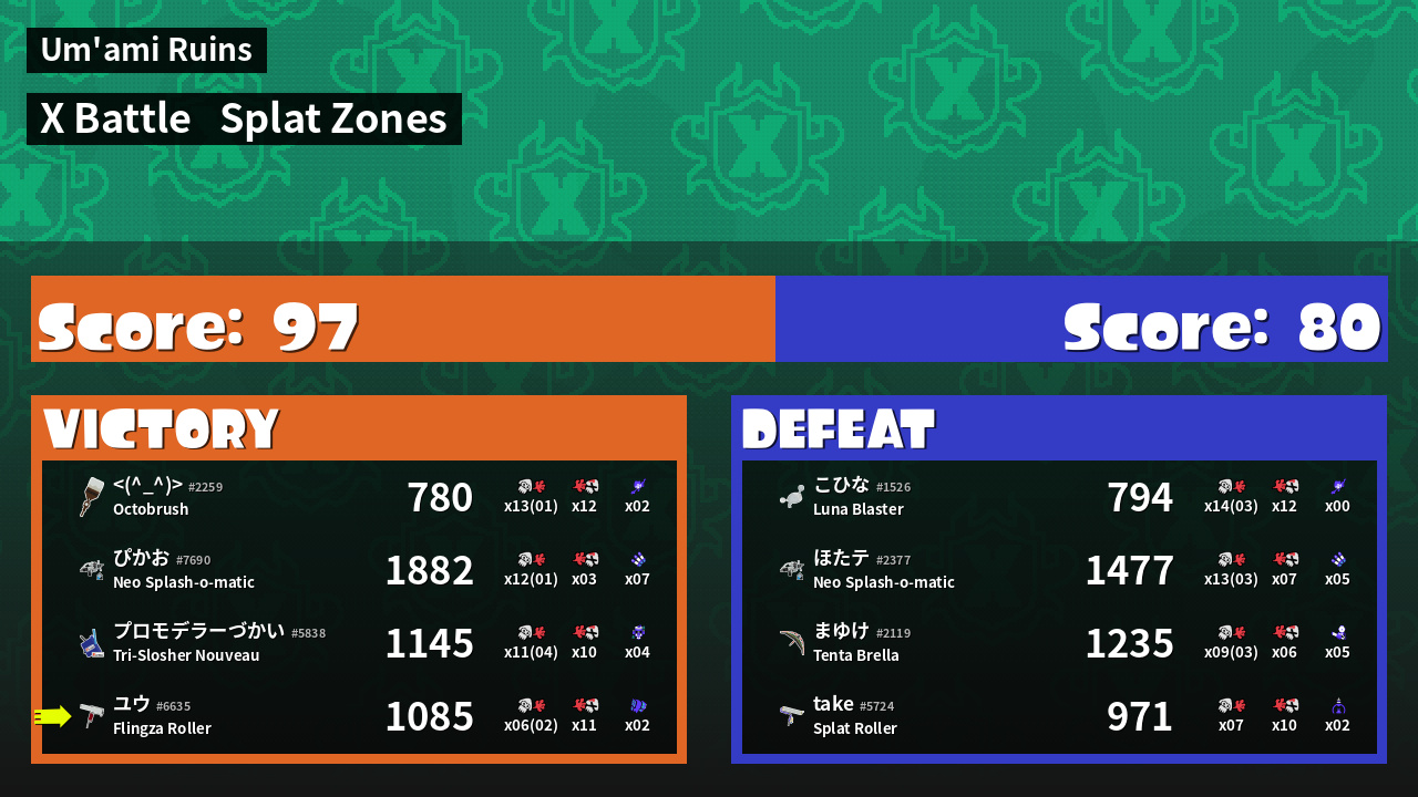 | Medals | #1 Tenta Missiles User #2 Super Jump Spot #2 Splat Assister | ||