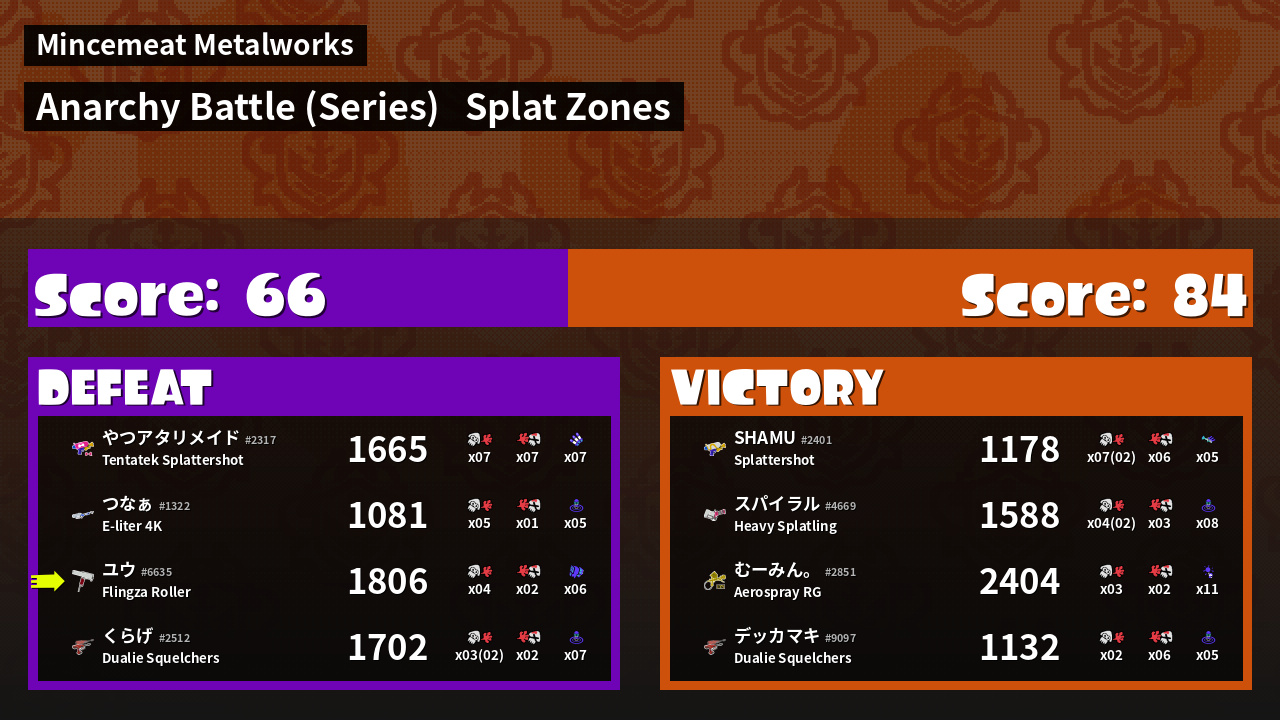 | Mode | Splat Zones - Anarchy Battle (Series) | ||
