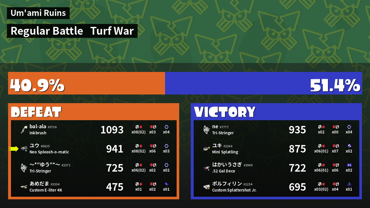 | Mode | Turf War - Regular Battle | ||