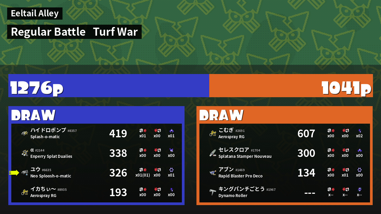 | Mode | Turf War - Regular Battle | ||
