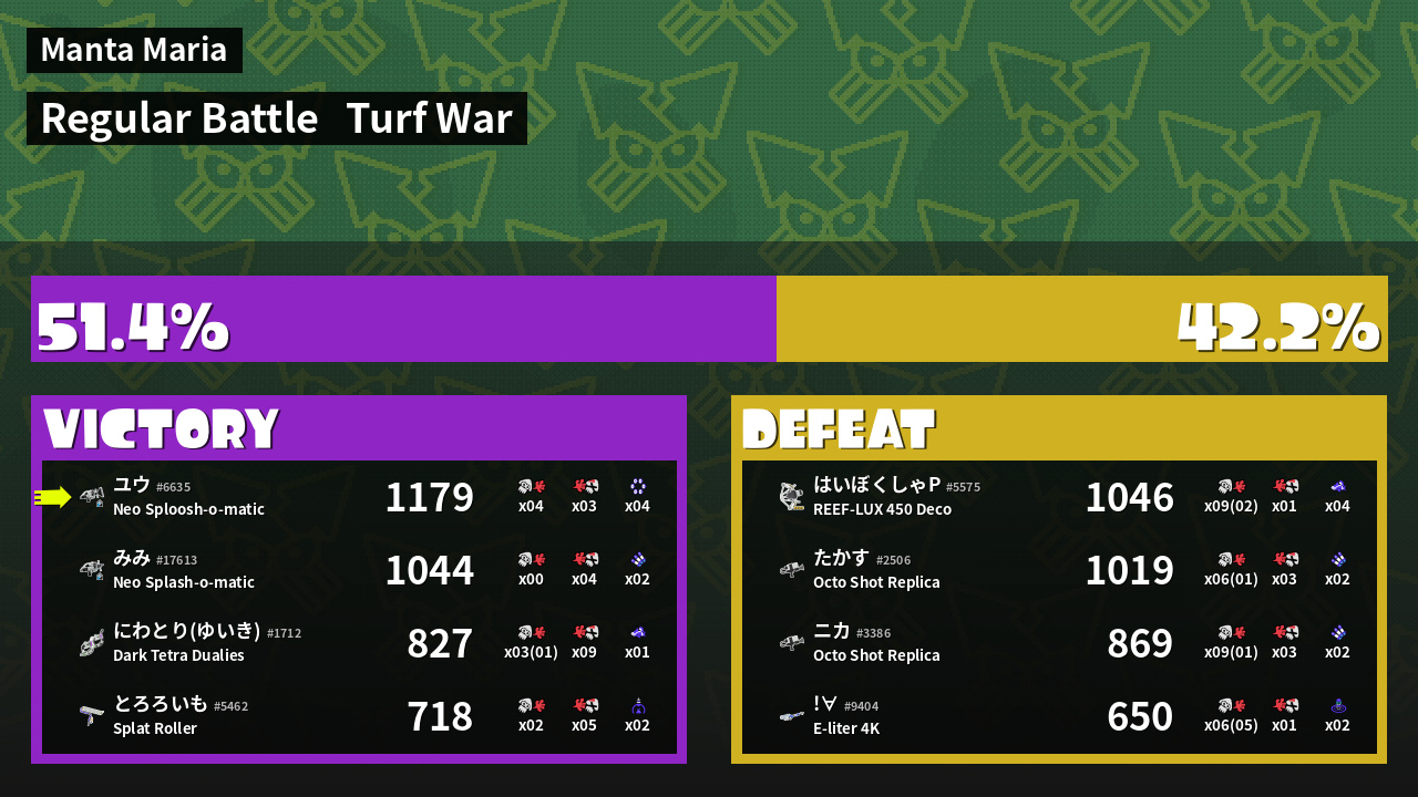 | Medals | #1 Overall Splatter #1 Turf Inker #1 Enemy-Base Inker | ||